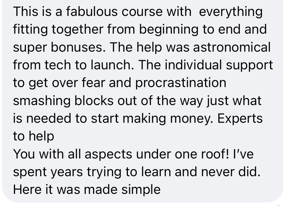 Our final session will be a Q&A with me, my tech expert and with past students who have implemented the course and are now making recurring revenue so you can ask them how they did it too.