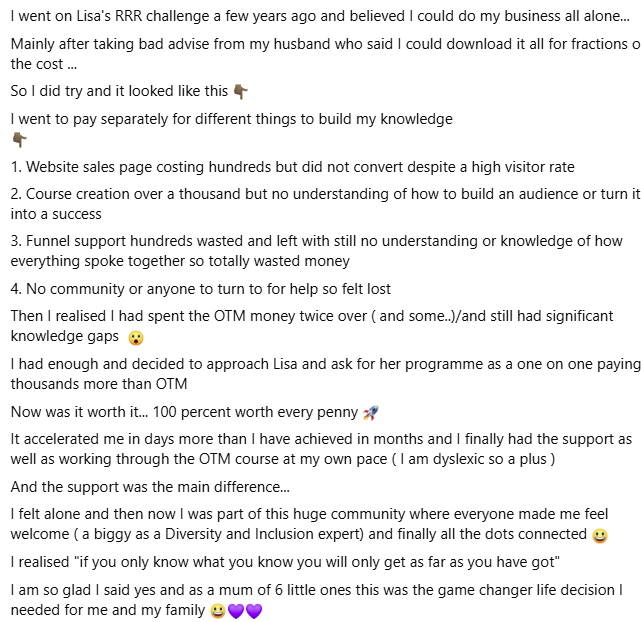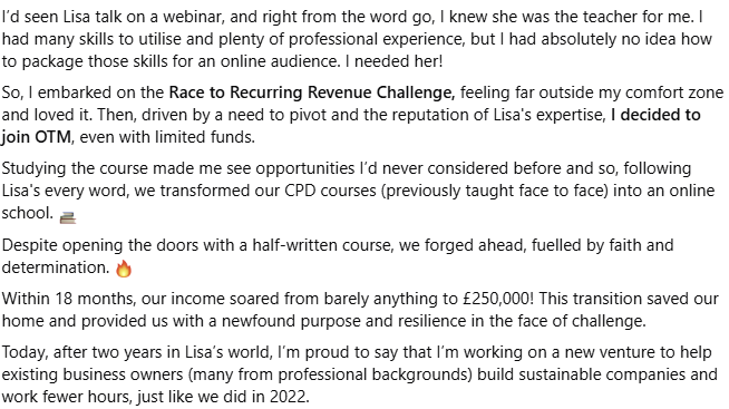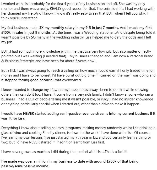 I worked 1-2-1 with clients for years and could never see a way out of it... and then I met Lisa
