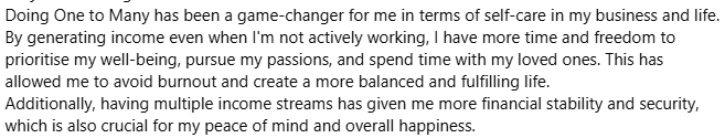 I created One to Many® Elite because I knew I wanted to share what I had learned. I wanted to rid the term Passive Income of the negative connotations that hang over it. It’s crammed with everything I learned AND implemented that worked so that you can have my steps to success.
