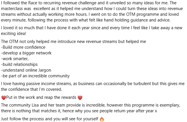 So I started learning a lot about recurring revenue. I went through the same worries as everyone – what would I even do a course, membership or programme on?